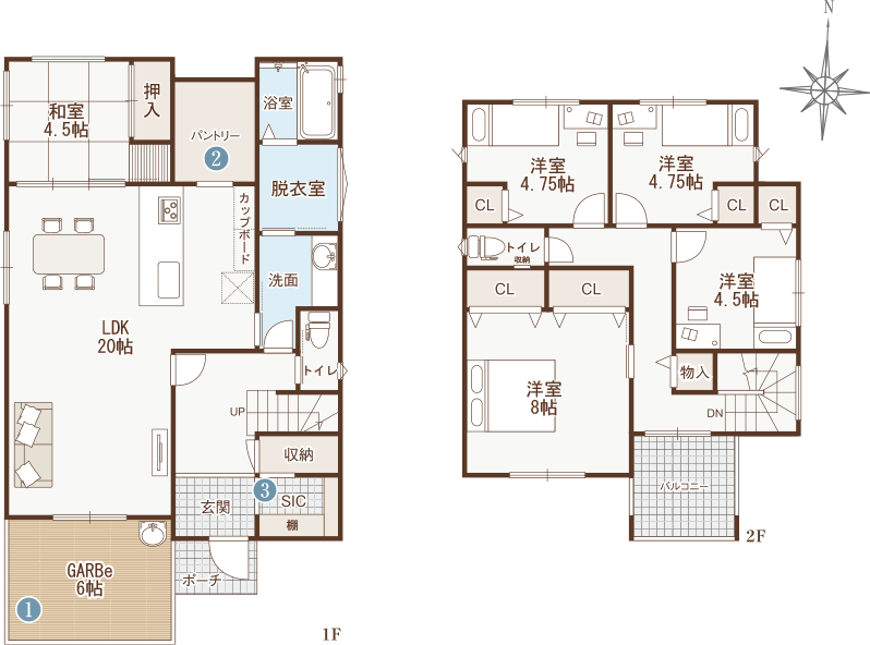W発電、GARBe、ビルトインガレージ、プライベートテラスの選べるアウトドアスタイルが魅力のプラン。